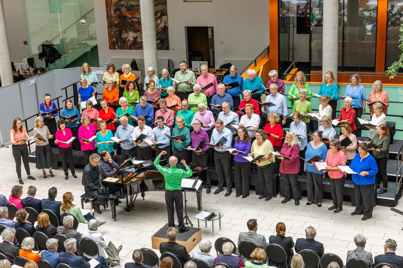Am Sonntag, dem 21.09.2025 hatte die Volksbank Dortmund zu einem stimmungsvollen Matinee-Konzert eingeladen. Vor zahlreichem Publikum präsentierte der Philharmonische Chor begleitet von Michael Hönes und Karsten Scholz am Klavier ein abwechslungsreiches Programm mit einer Auswahl von Liebesliedern op. 52 und op 65 von Johannes Brahms. Die Leitung lag in den bewährten Händen von Granville Walker.