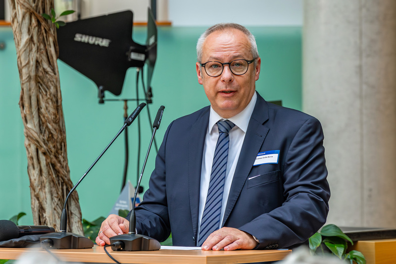 Der Bereichsleiter der Volksbank Dortmund, Andreas Große-Benne, unterstrich in seiner Eröffnungsrede die Verantwortung des Dortmunder Geldinstituts auch für die kulturelle „Bereicherung“ der Stadt, indem er den humorvollen Vergleich zwischen Banknoten und Musiknoten zog.